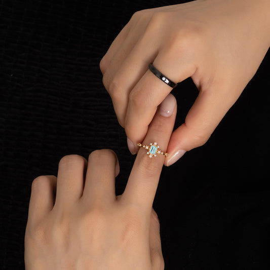 Natural Sky Blue Topaz 10k Gold Finish & Black Rhodium Plating Couple Ring Set