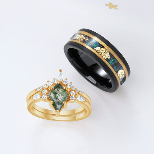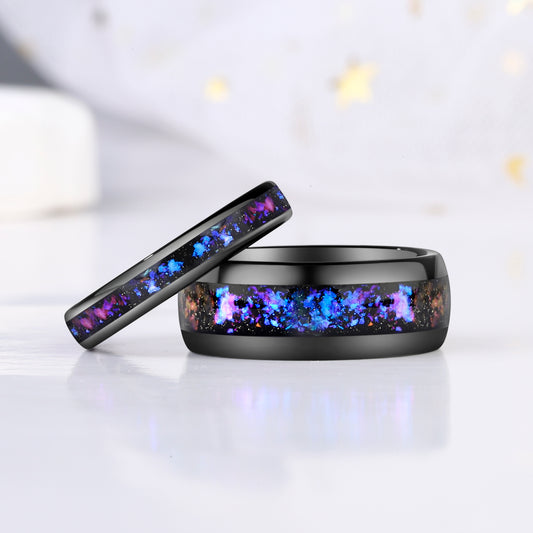 Galaxy Orion Nebula Sand Stone & Opal Tungsten Ring for Men