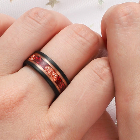Crushed Garnet & Rose Gold Leaf Tungsten Ring for Men