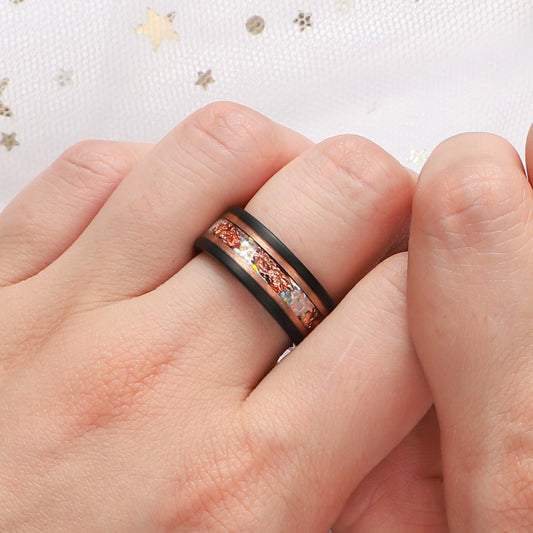 Galaxy Fire Opal Rose Gold Leaf Tungsten Ring for Men