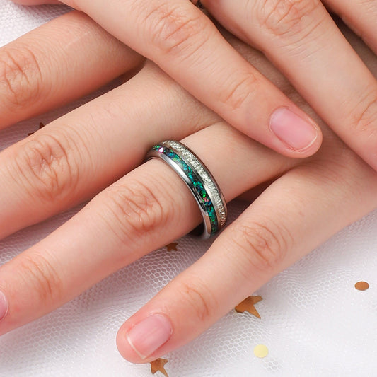 Crushed Green Opal Tungsten Ring for Men