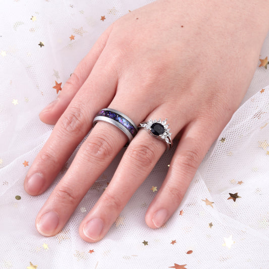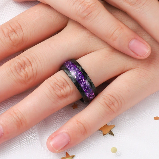 Crushed Amethyst Galaxy Tungsten Ring for Men