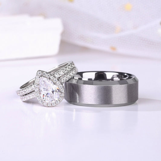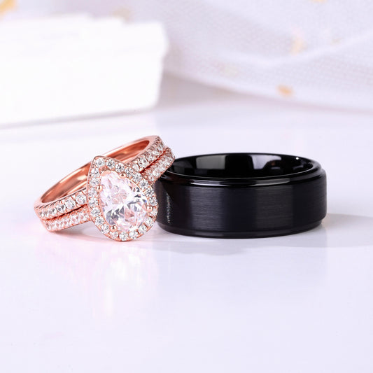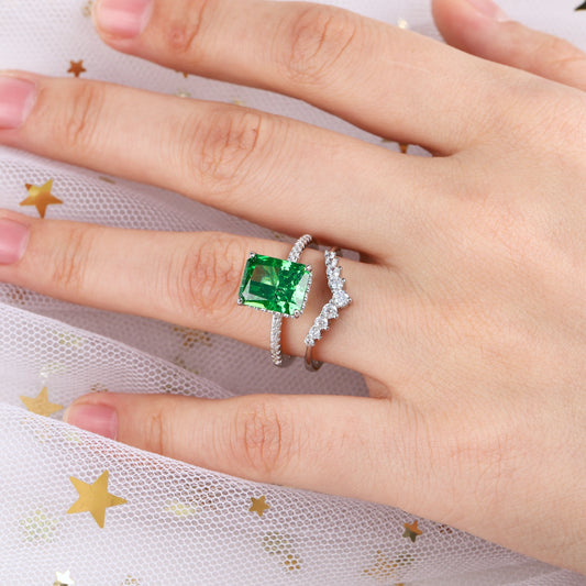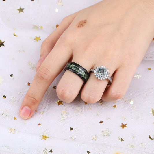 The Zelora - Diamond & Crushed Green Opal Couple Ring Set