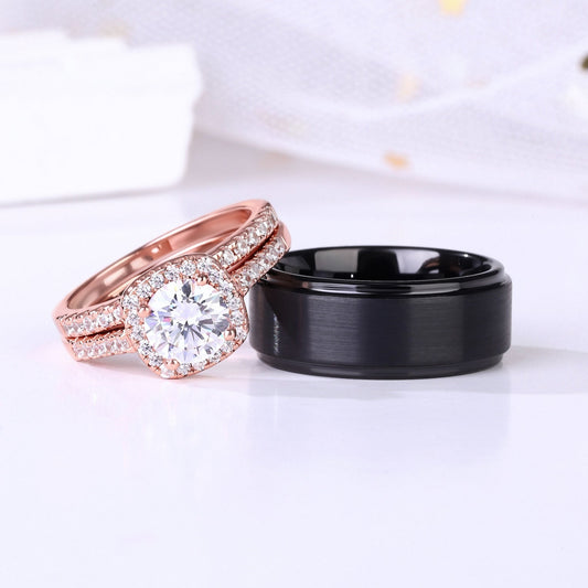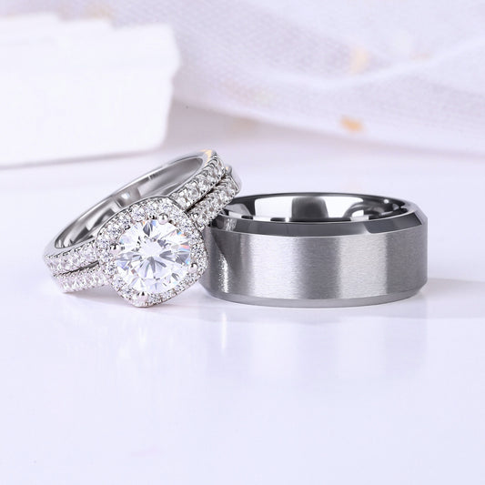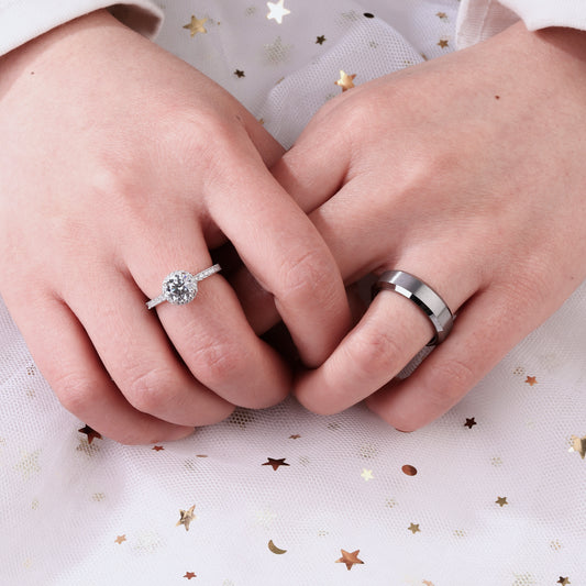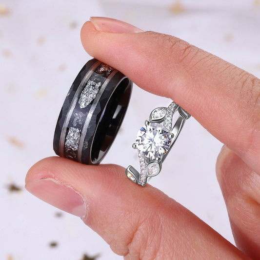 The Flareen - Firework & Crushed Amethyst Couple Ring Set