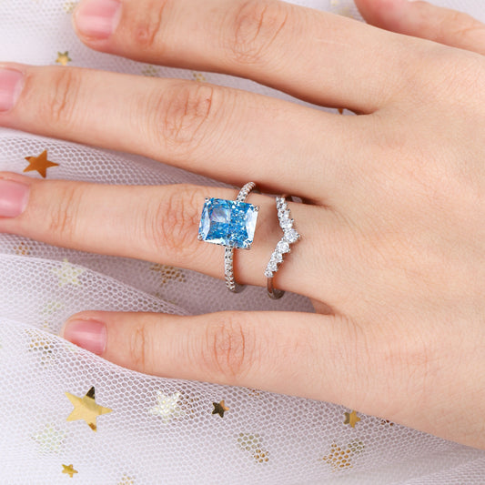 The Meridian - Diamond & Crushed Blue Opal Couple Ring Set