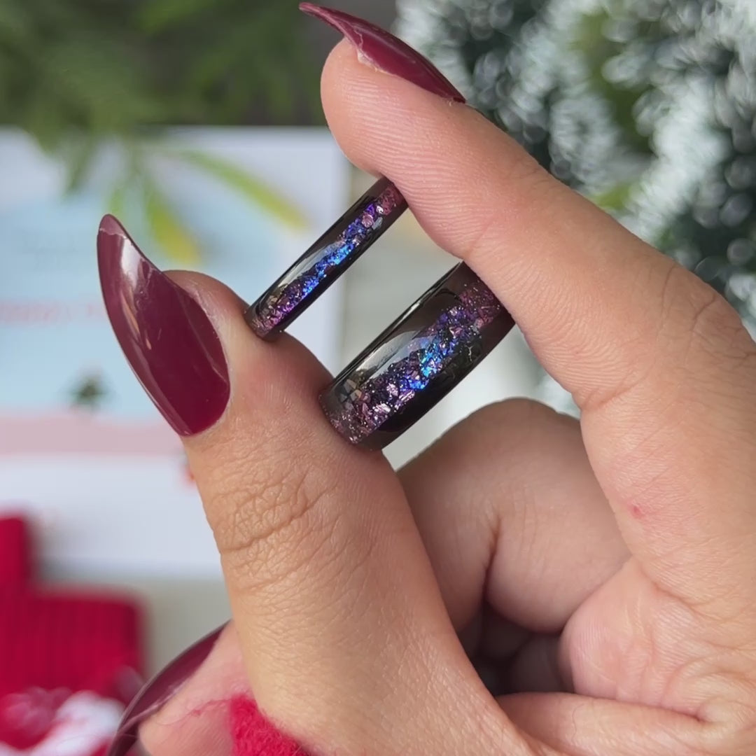 Crushed Amethyst Galaxy Tungsten Ring for Men