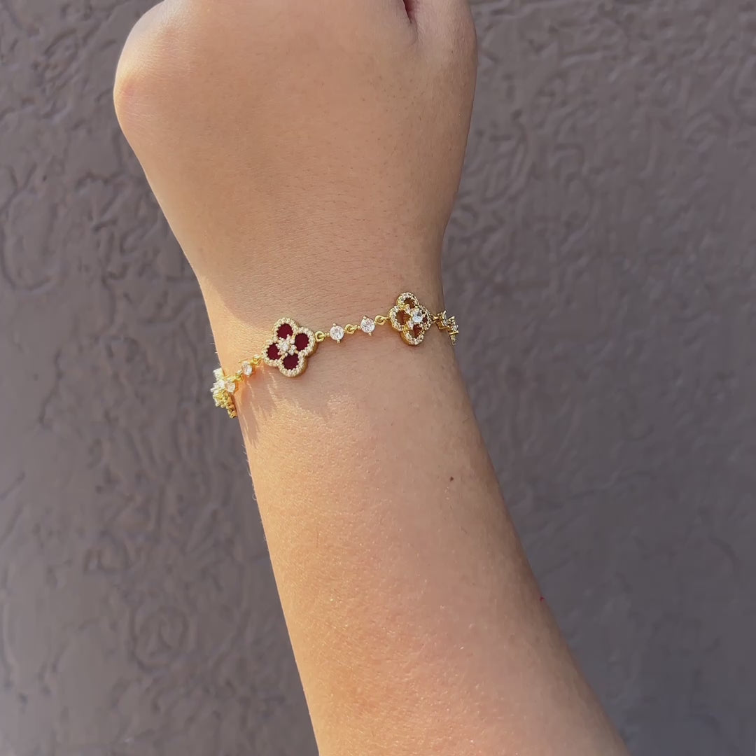 Good Luck Four-Leaves Clover Bracelet with Simulated Diamonds