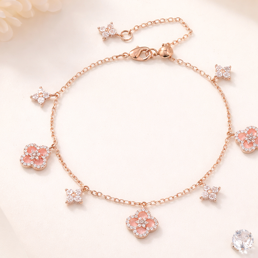 Four Leaf Rose Gold Clover Bracelet