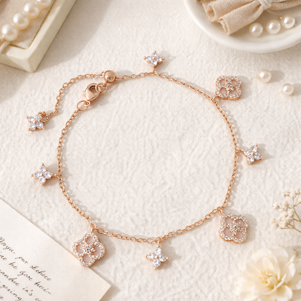 Add a touch of timeless elegance to your jewelry collection with this Van Cleef–inspired clover bracelet, crafted from high-quality copper and finished in luxurious rose gold plating. Featuring delicate four-leaf clover charms accented with sparkling stones, this bracelet symbolizes luck, love, and femininity. Lightweight and comfortable for everyday wear, it’s perfect for stacking or wearing solo for a refined, graceful look—ideal for gifting or elevating both casual and occasion outfits.