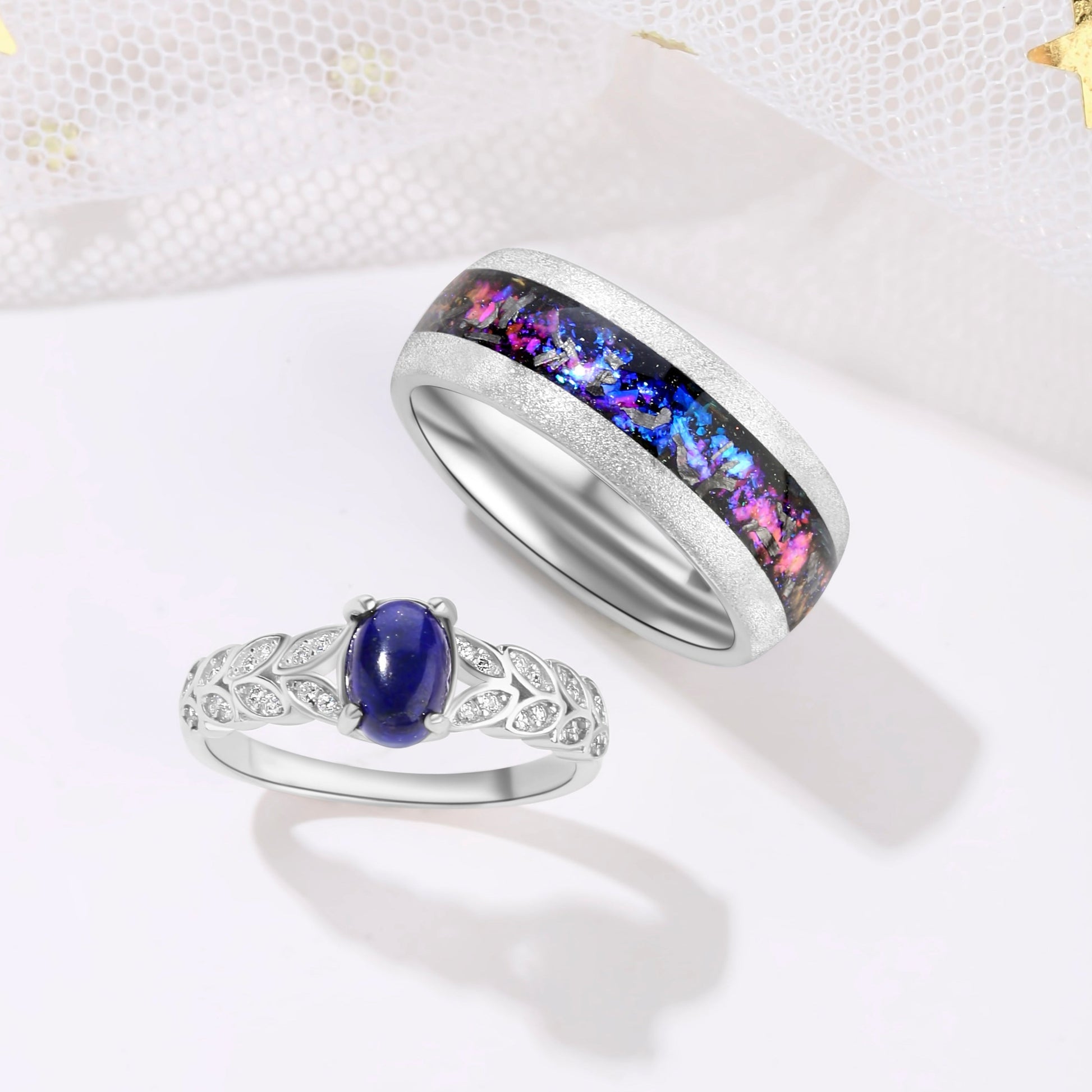 Embrace the wonder of the cosmos with the Lapis Lazuli & Crushed Sandstone Couple Ring Set, designed to symbolize the vastness of your love and connection.