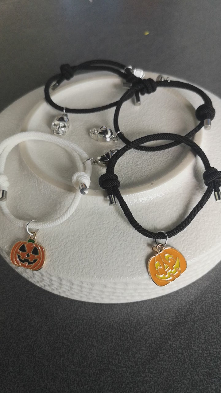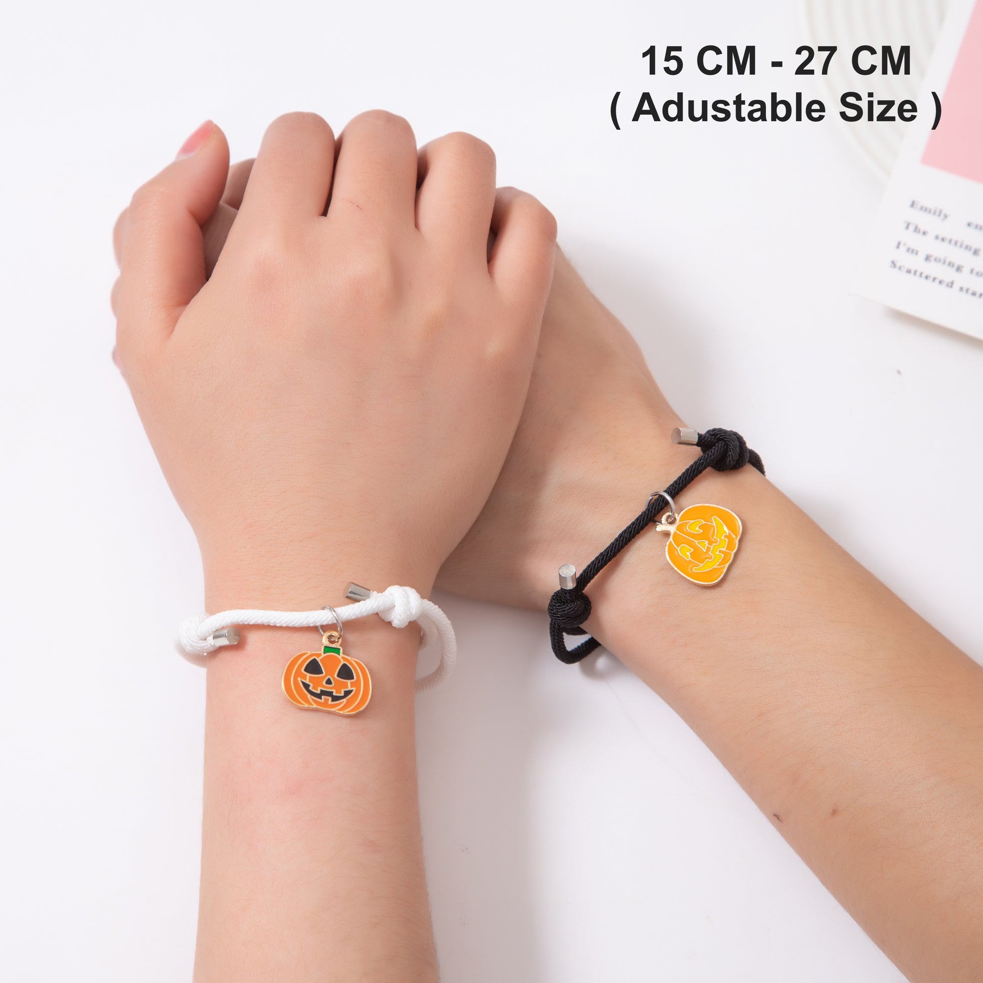 The Pumpkin & Skull Matching Halloween Bracelets are designed to infuse a touch of Halloween spirit and a hint of spookiness into your relationship. This matching bracelet set typically includes two bracelets, one for each partner, featuring adorable pumpkin-themed and skull-themed charms, Halloween-inspired beads, or eerie color combinations.
