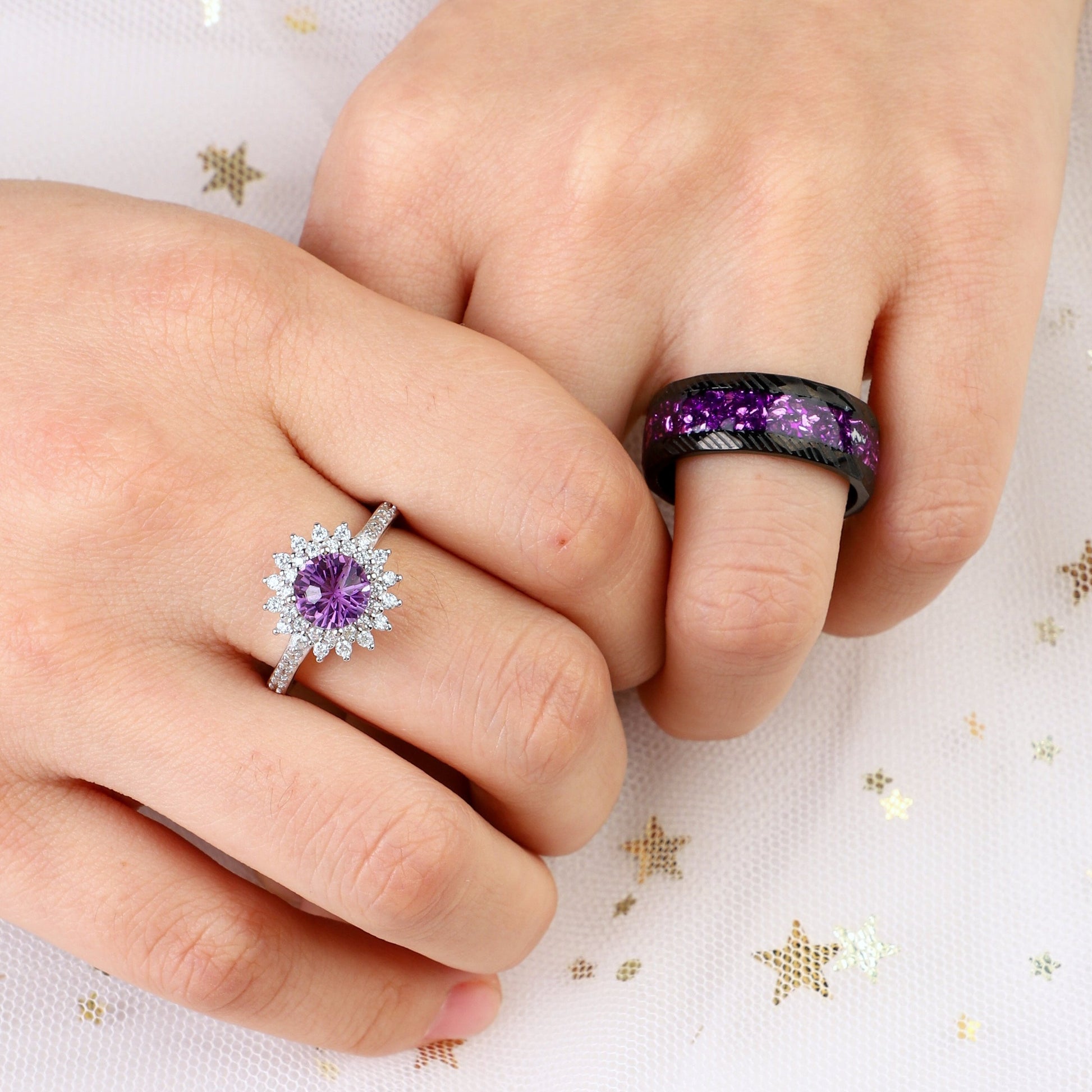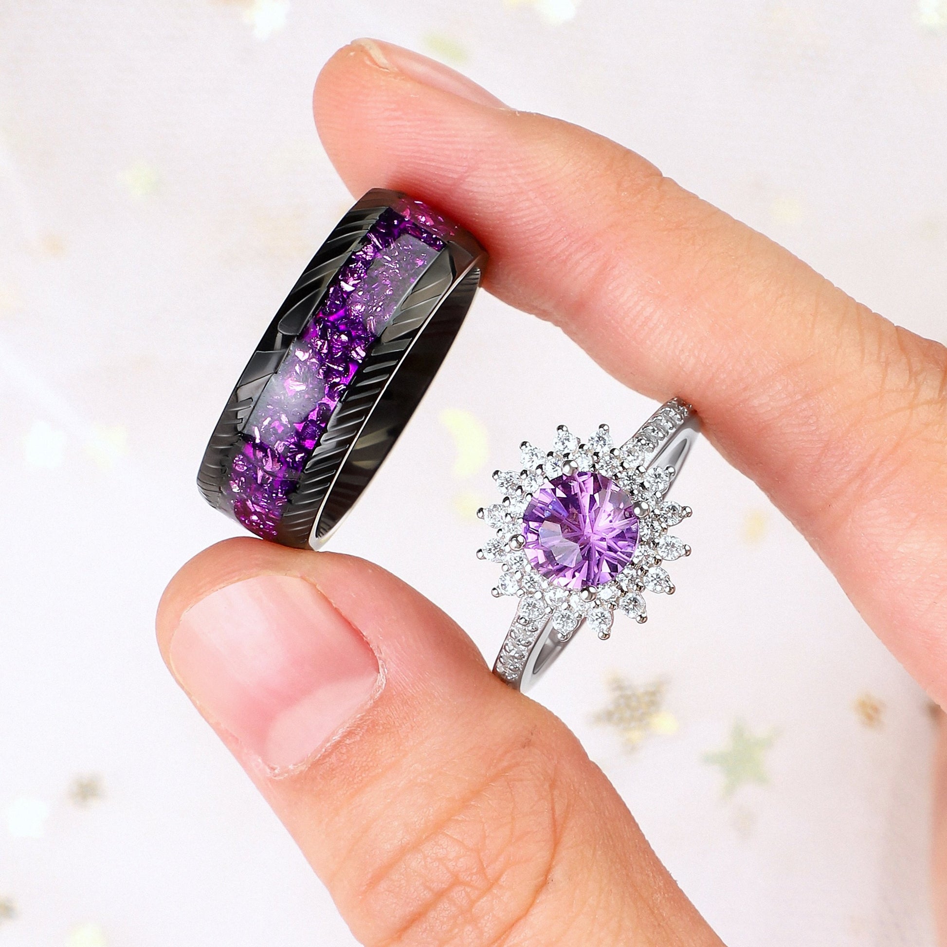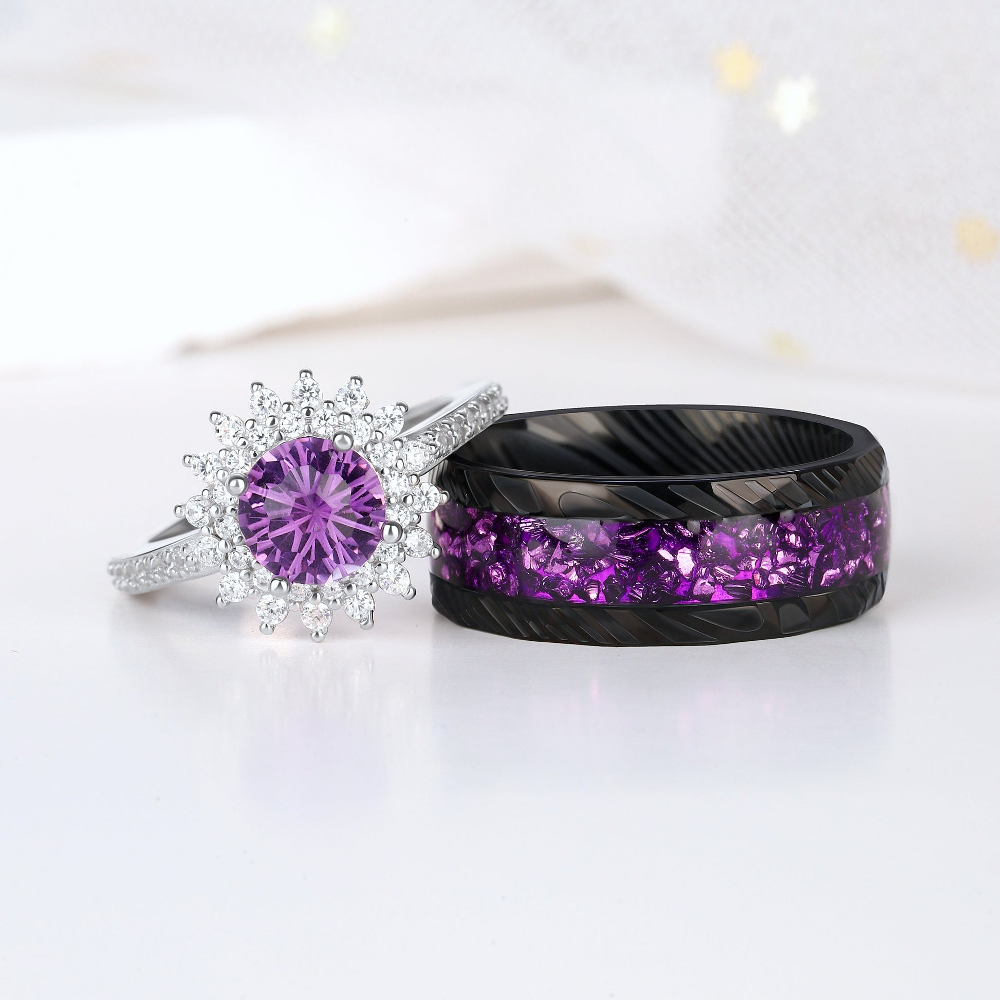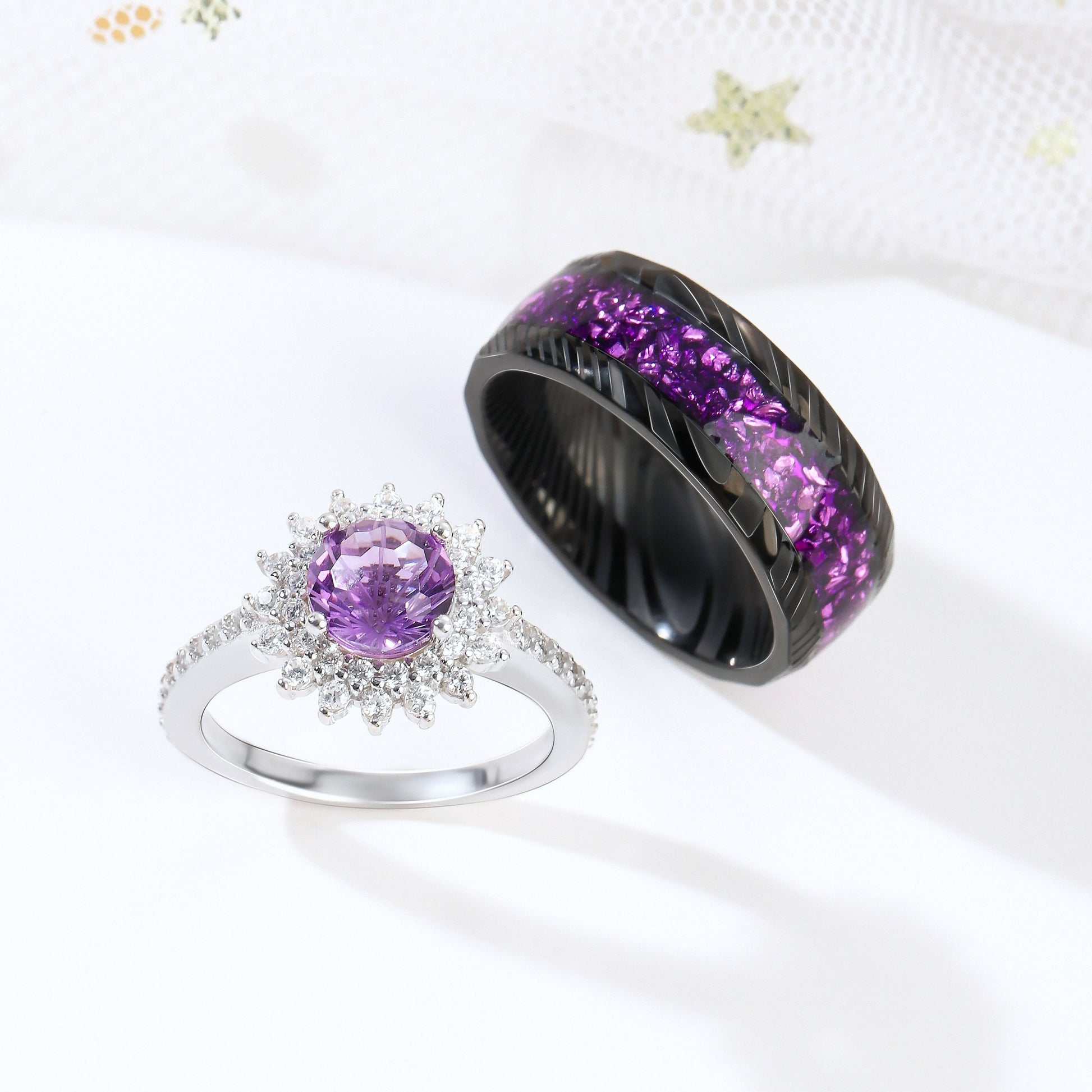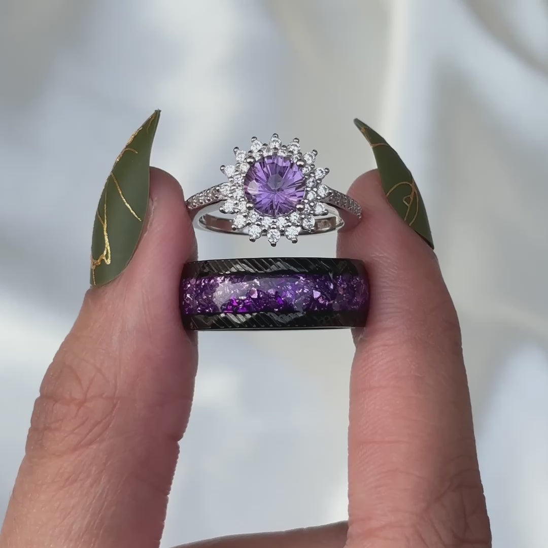 The Flareen - Firework & Crushed Amethyst Couple Ring Set