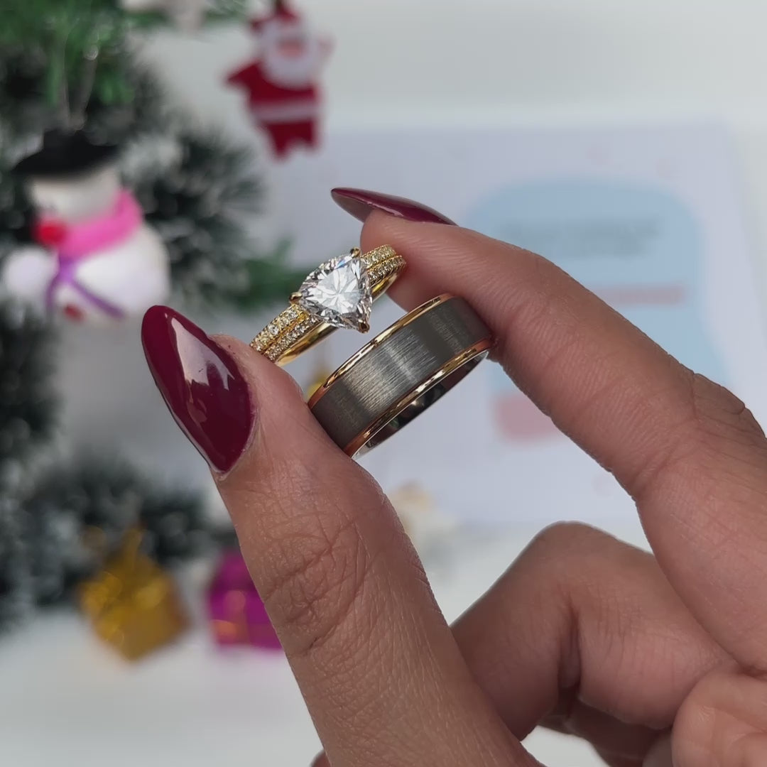 The Twisture - 1.5 Ct Marquise 18k Gold Plated/Tungsten Couple Rings