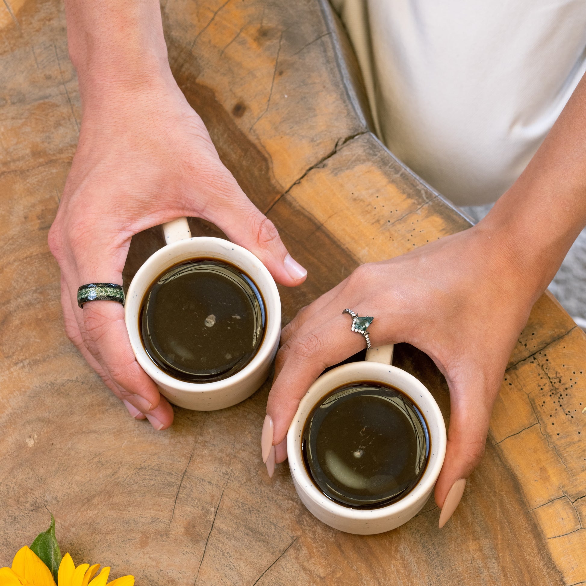 The Verdal - Natural Paraiba & Crushed Green Opal Couple Ring Set