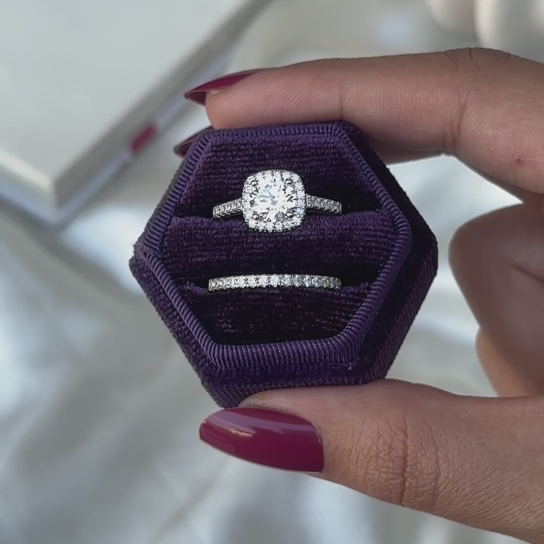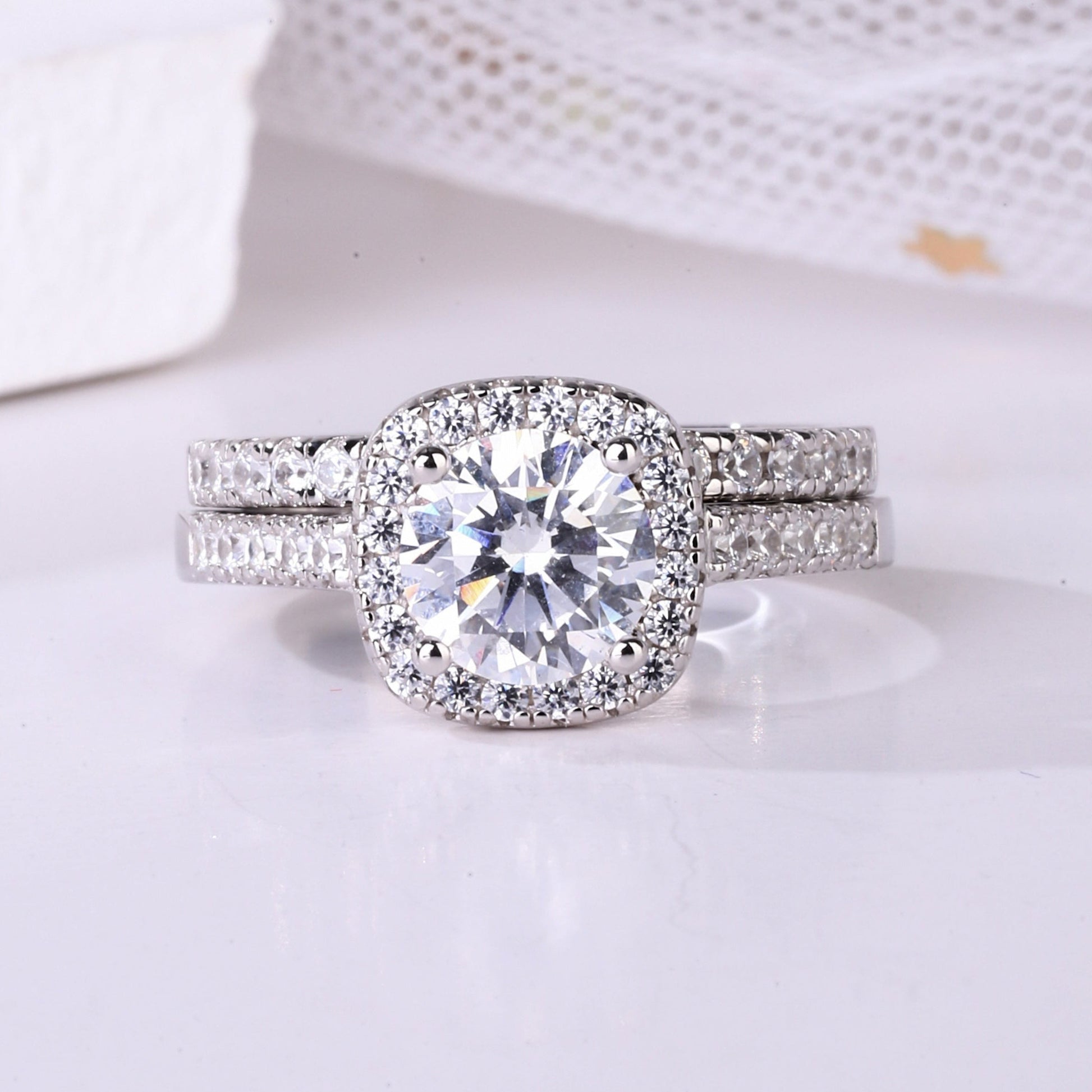 The women’s set is a stunning duo of a ring and matching band, designed to capture hearts. The centerpiece is a dazzling round-shaped white diamond, delicately set to reflect brilliance from every angle.
