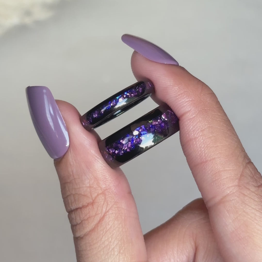 The Amaral - Crushed Amethyst Galaxy Tungsten Ring for Her