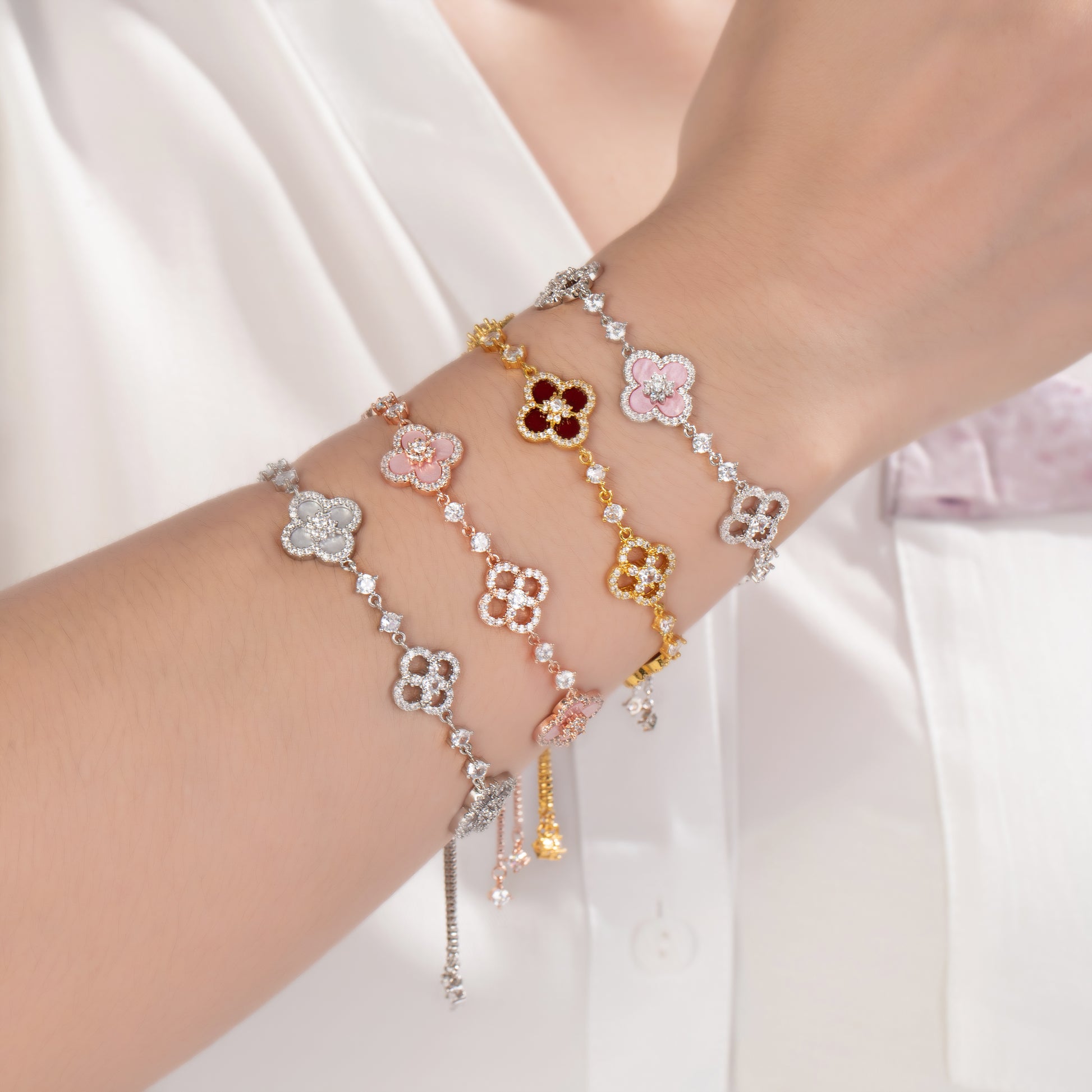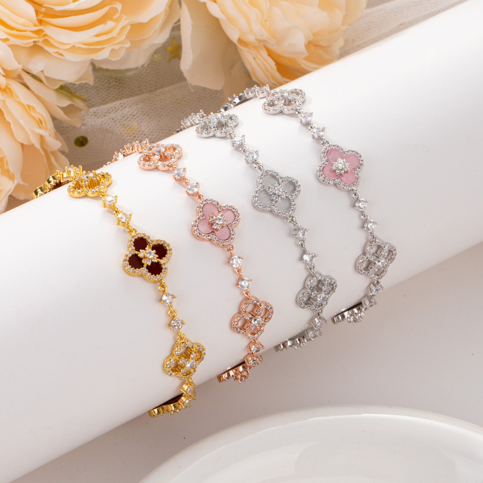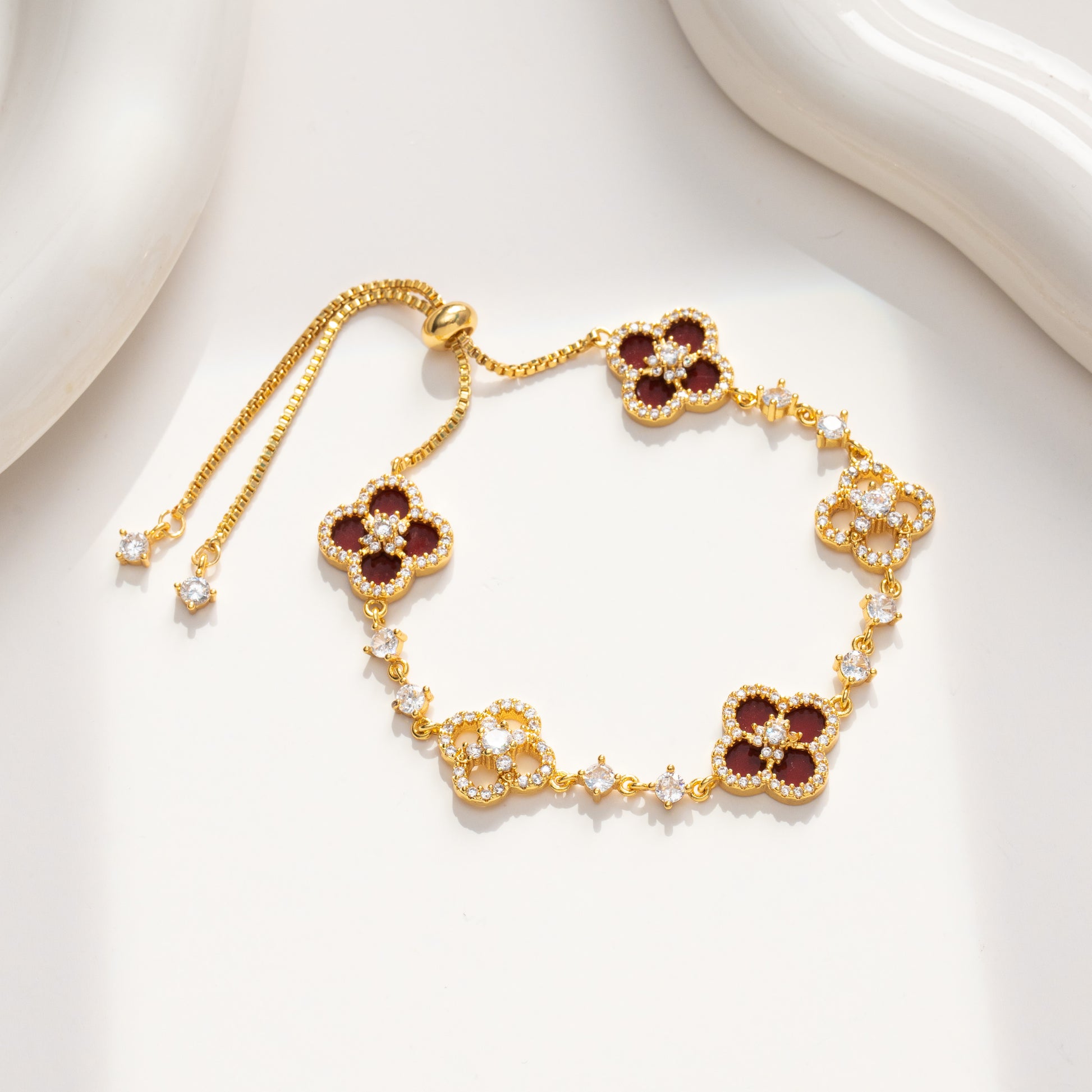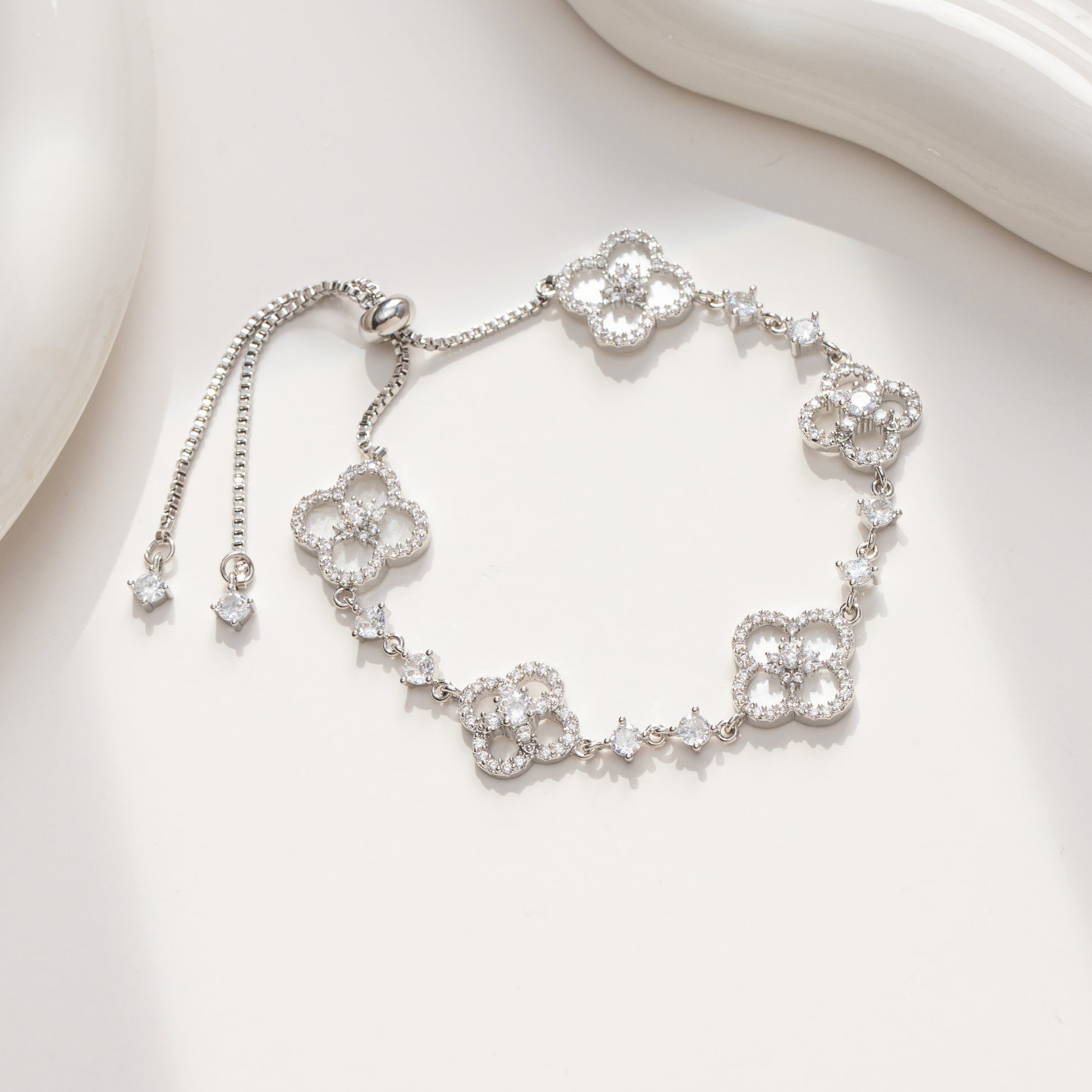 Good Luck Four-Leaves Clover Bracelet with Simulated Diamonds