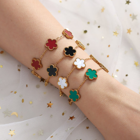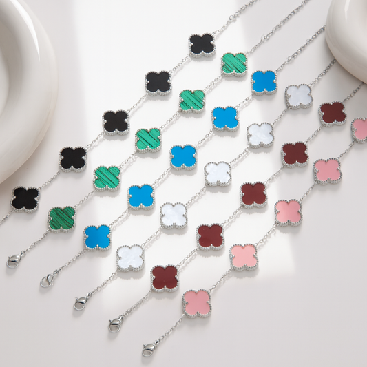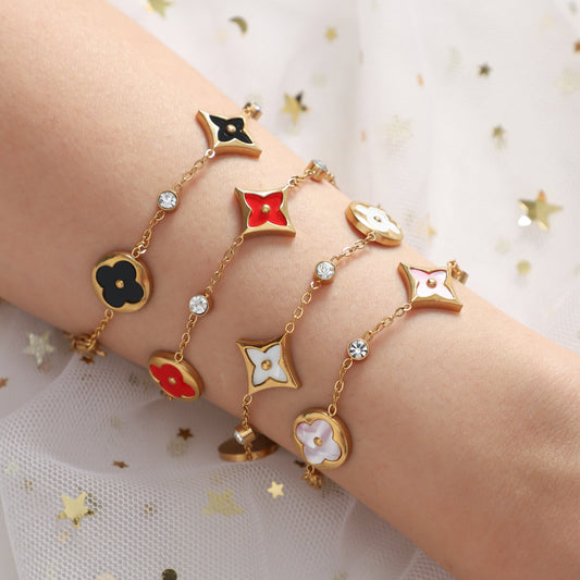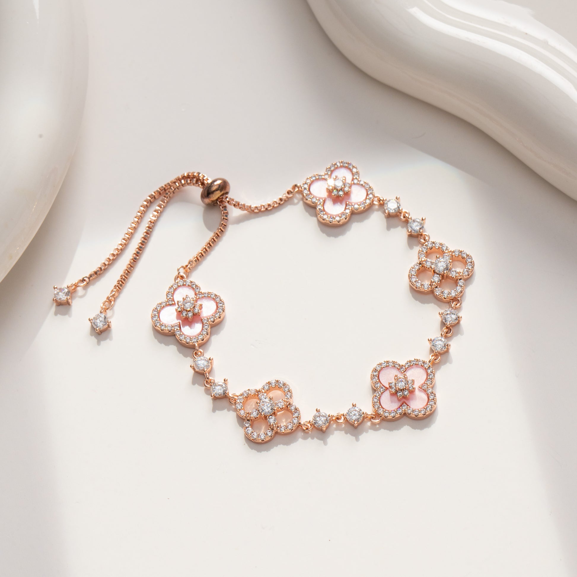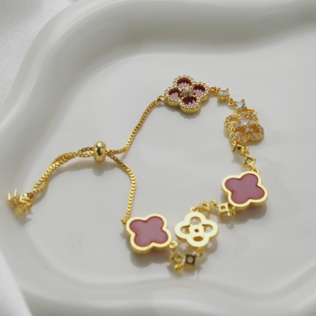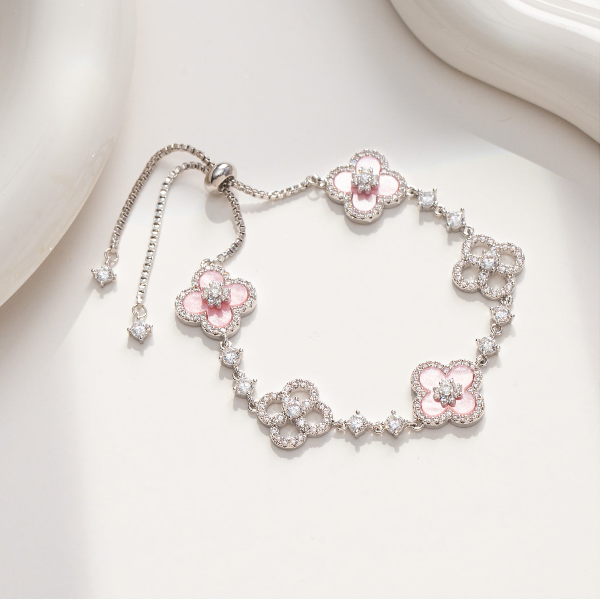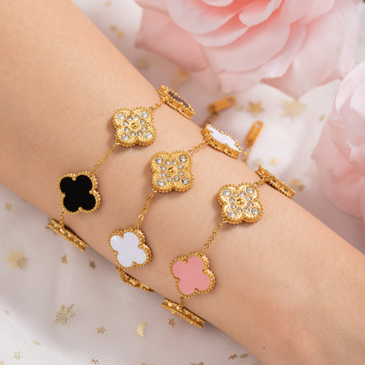 Good Luck Four-Leaves Clover Bracelet with Simulated Diamonds