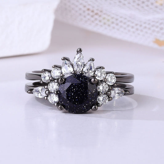 The Midnera - Blue Sandstone Wedding Ring - Black Rhodium