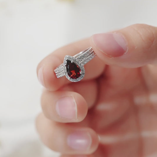 The Ember - Natural Garnet S925 Silver Wedding Ring for Her