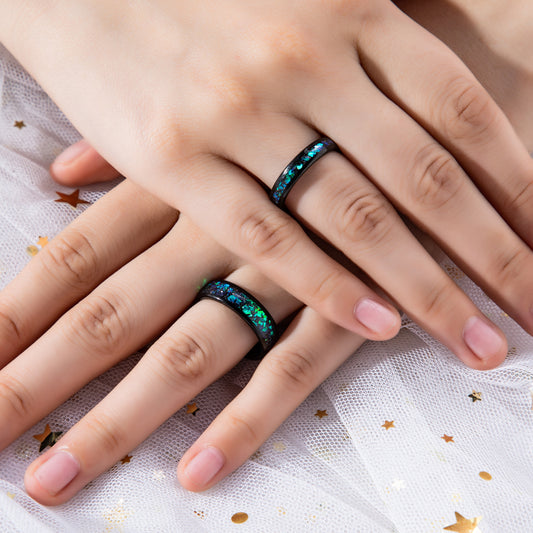 The Cosmira - Black Sandstone & Crushed Opal Meteorite Tungsten Ring for Women