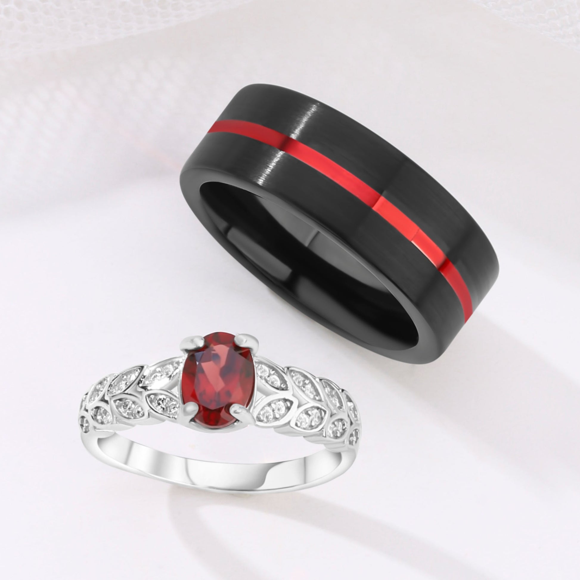 Celebrate a love that’s grounded in elegance and strength with the Natural Garnet 925 Silver Women’s Ring & Black Tungsten Men’s Ring Couple Ring Set. This sophisticated pairing is designed to embody the powerful connection between two souls, with each ring offering its own unique charm and meaning.
