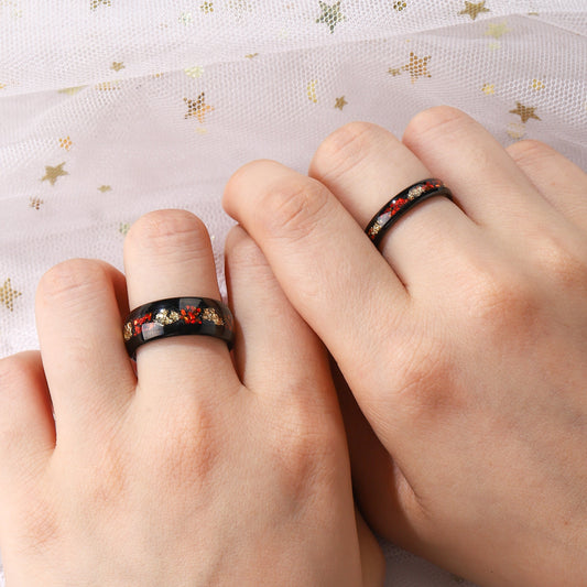 The Spectra - Black Sand Stone & Crushed Opal Couple Ring Set