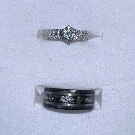 The Eldora - Diamond & Meteorite Couple Ring Set
