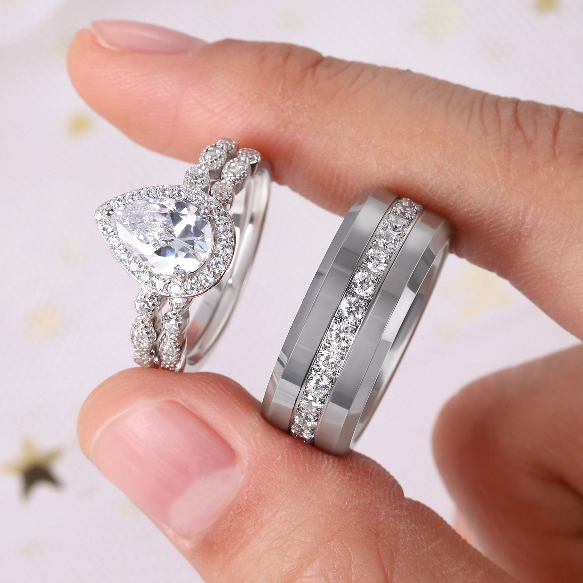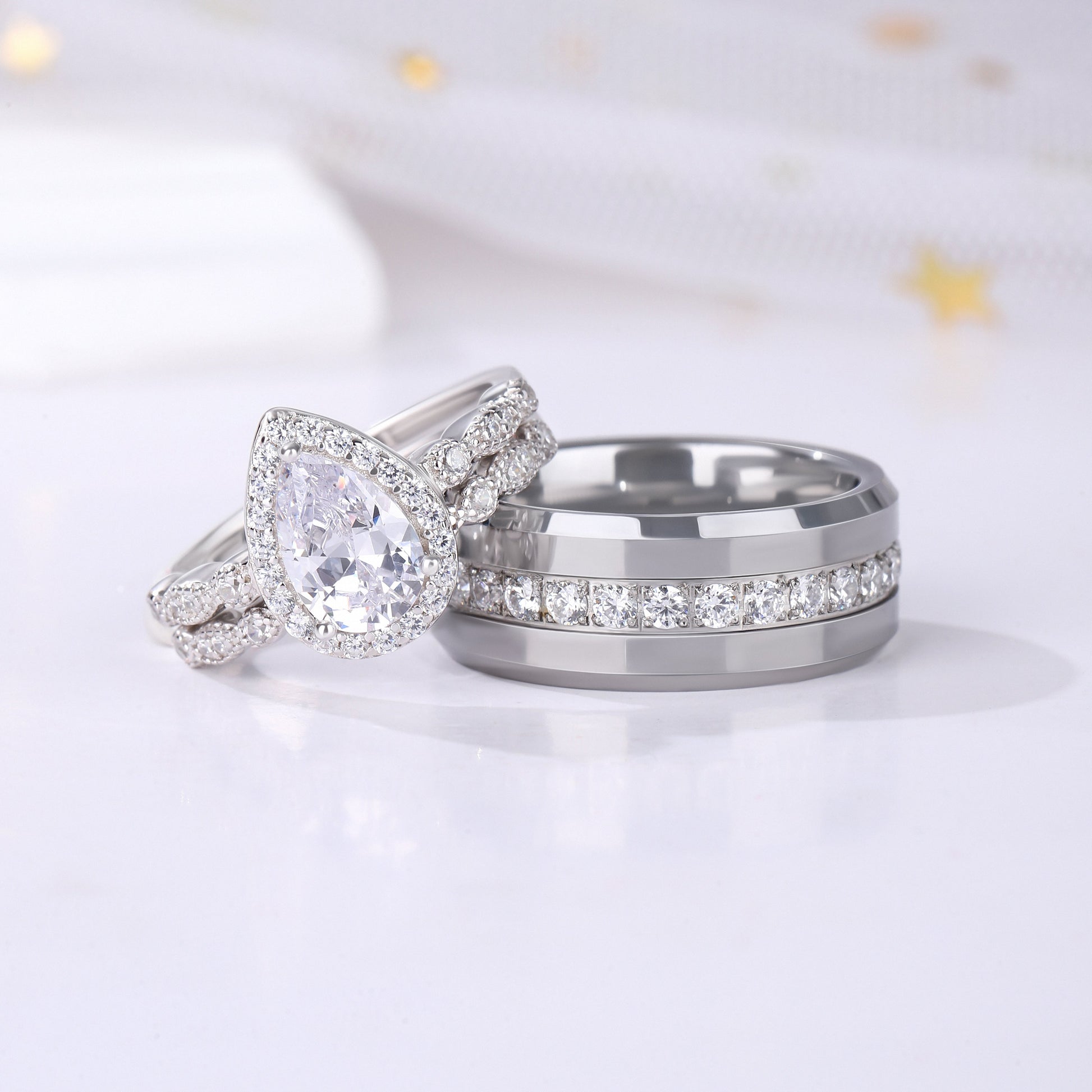 The Twisture - 1.5 Ct Marquise 18k Gold Plated/Tungsten Couple Rings