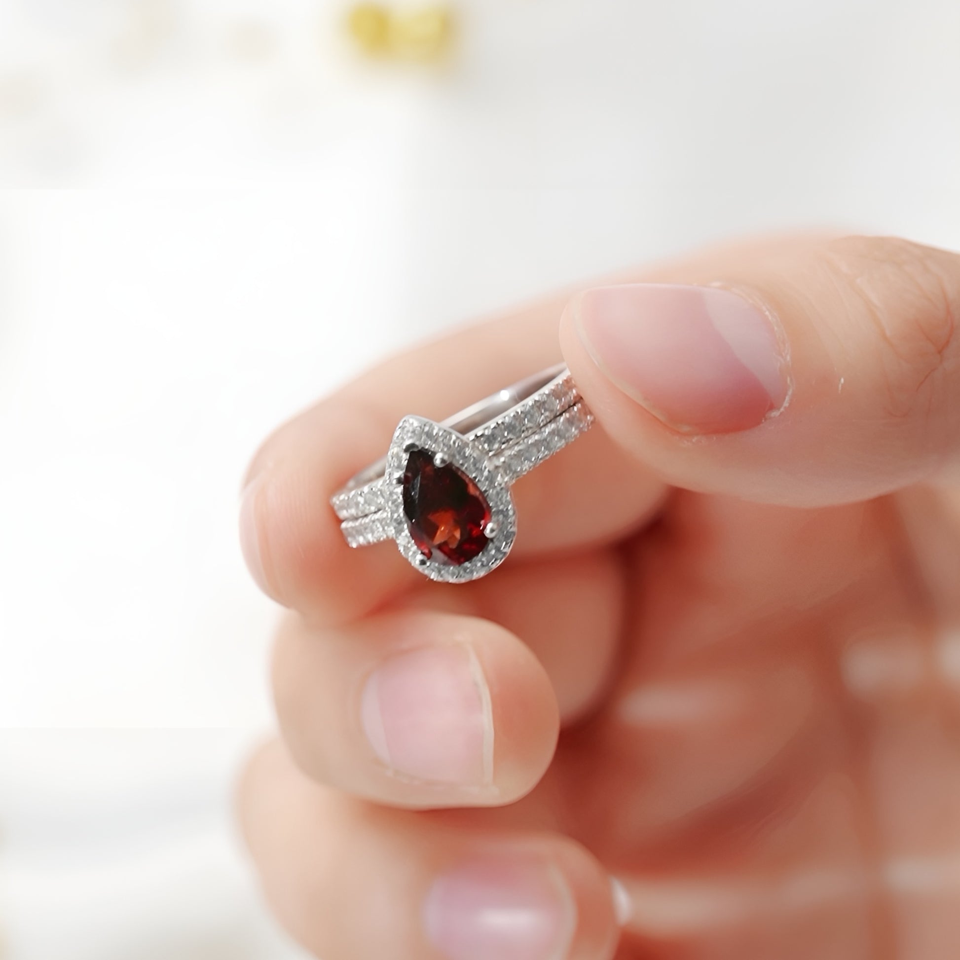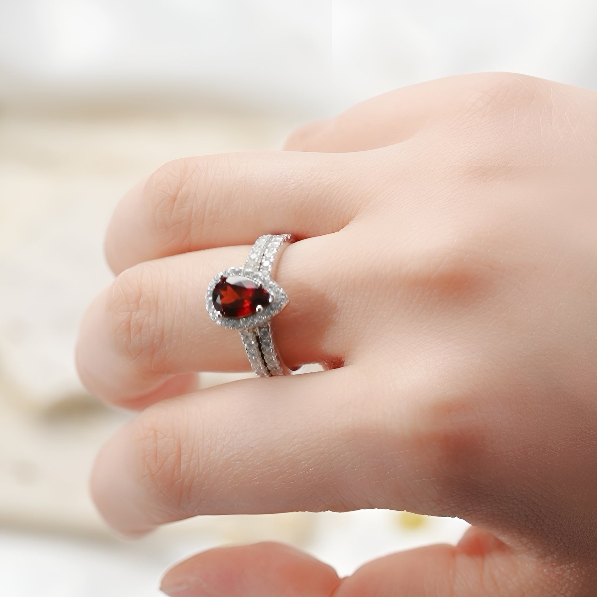 The Ember - Natural Garnet S925 Silver Wedding Ring for Her
