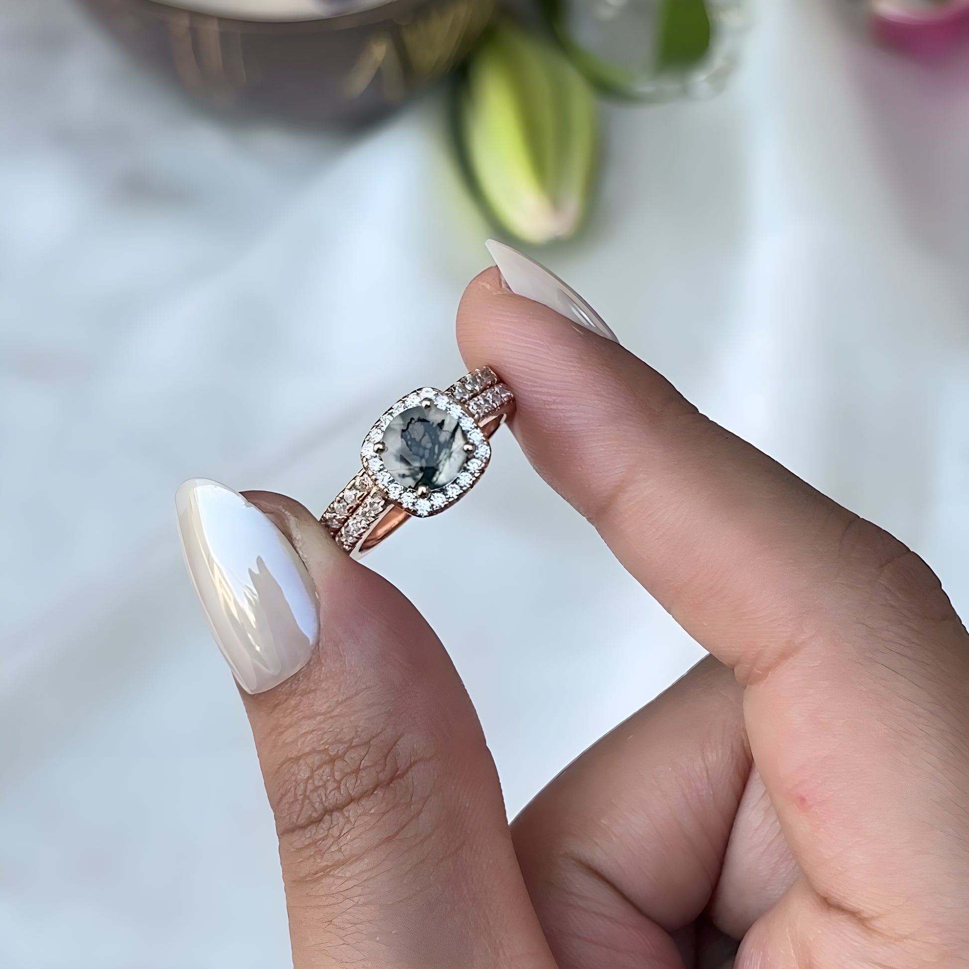 Center Stone: Natural Moss Agate
