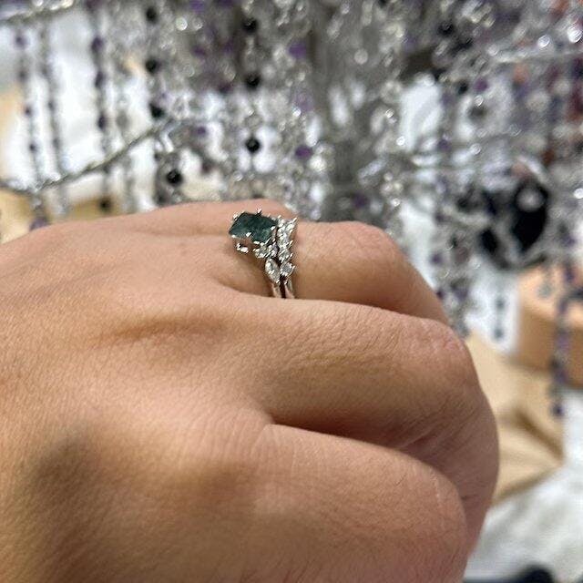The Amara - Emerald Cut & Crushed Amethyst Couple Ring Set